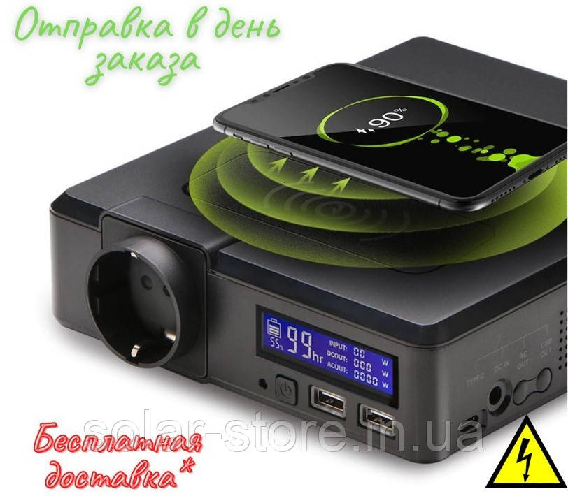 Як накопичувач енергії використовуються Li-ion акумуляторні елементи загальною ємністю 41600 мАг. Термін служби батареї – 700 циклів без зниження ефективності. Таким чином, ви можете легко та зручно заряджати будь-яку техніку: телефон, планшет, вентилятор, телевізор, ноутбук, лампу і т.д.
